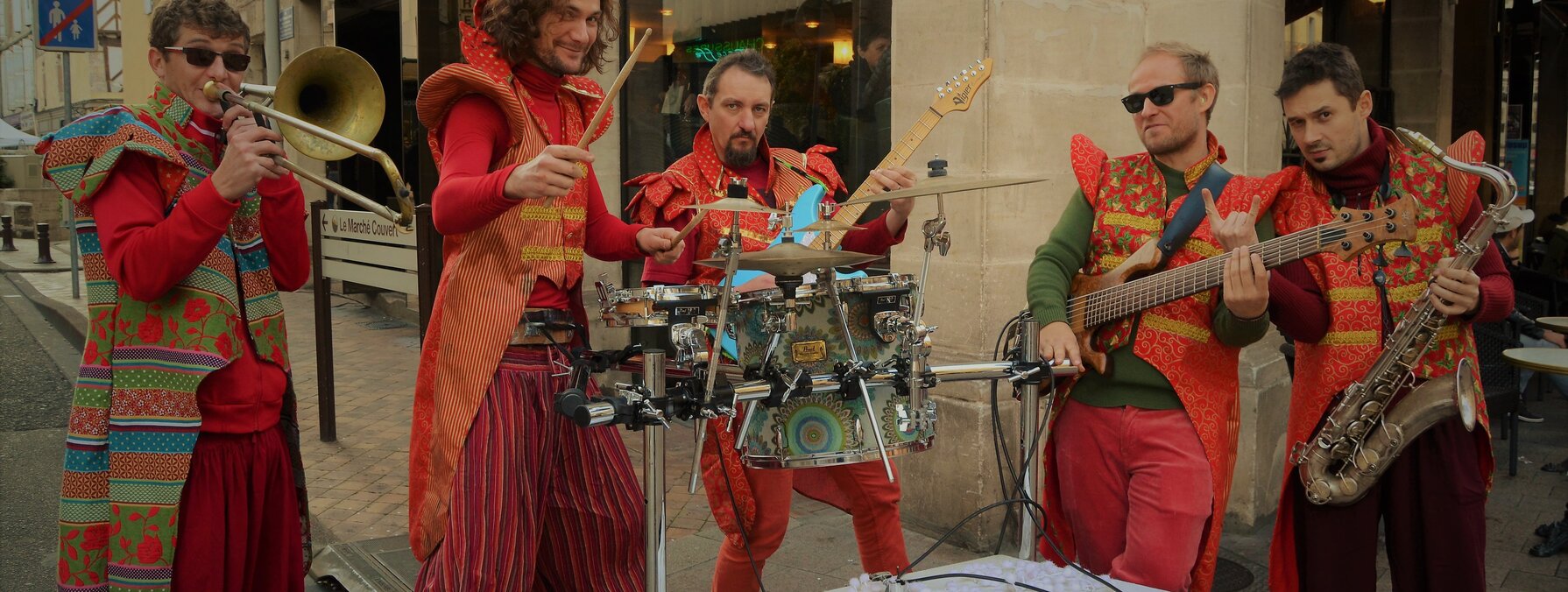 Voici 5 musiciens qui envoient du funk et des arrangements de chansons de Noël à la sauce New-Orleans. Déambulant avec leur charrette amplifiée, ils apporteront partout le funk endiablé mélangé aux joyeuses mélodies chaloupées de Noël.